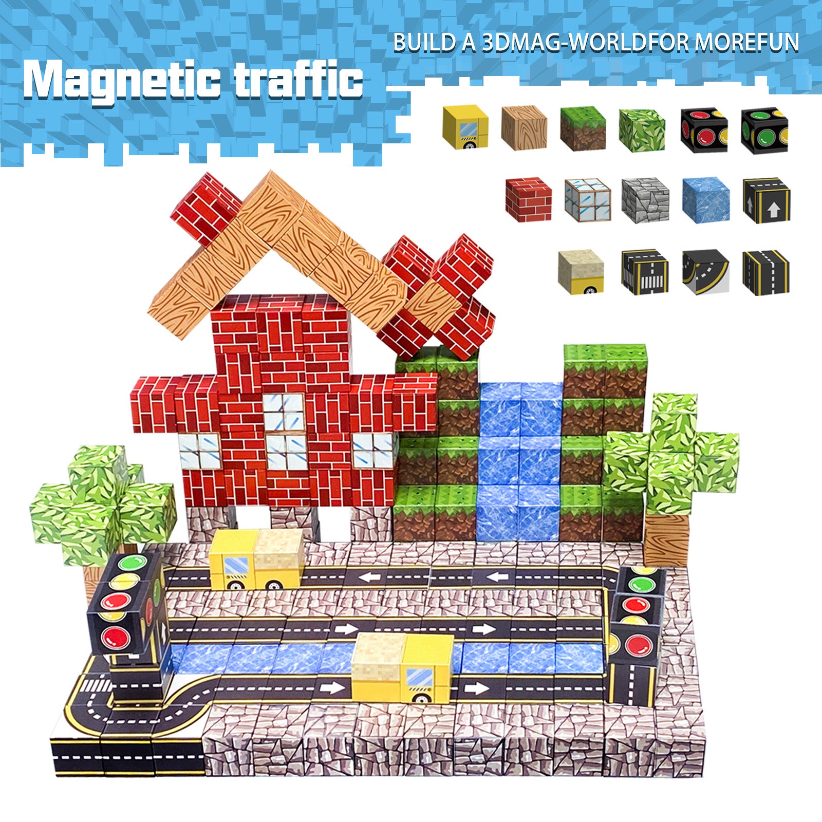 Magnetic Building Blocks Set - Traffic Light & Roadway Building Blocks